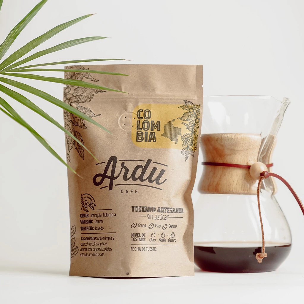 Café Blend Ardu: combinación de 70% Brasil y 30% Colombia. El resultado es una taza equilibrada, donde conviven notas dulces y redondeadas con matices frescos y vivaces.