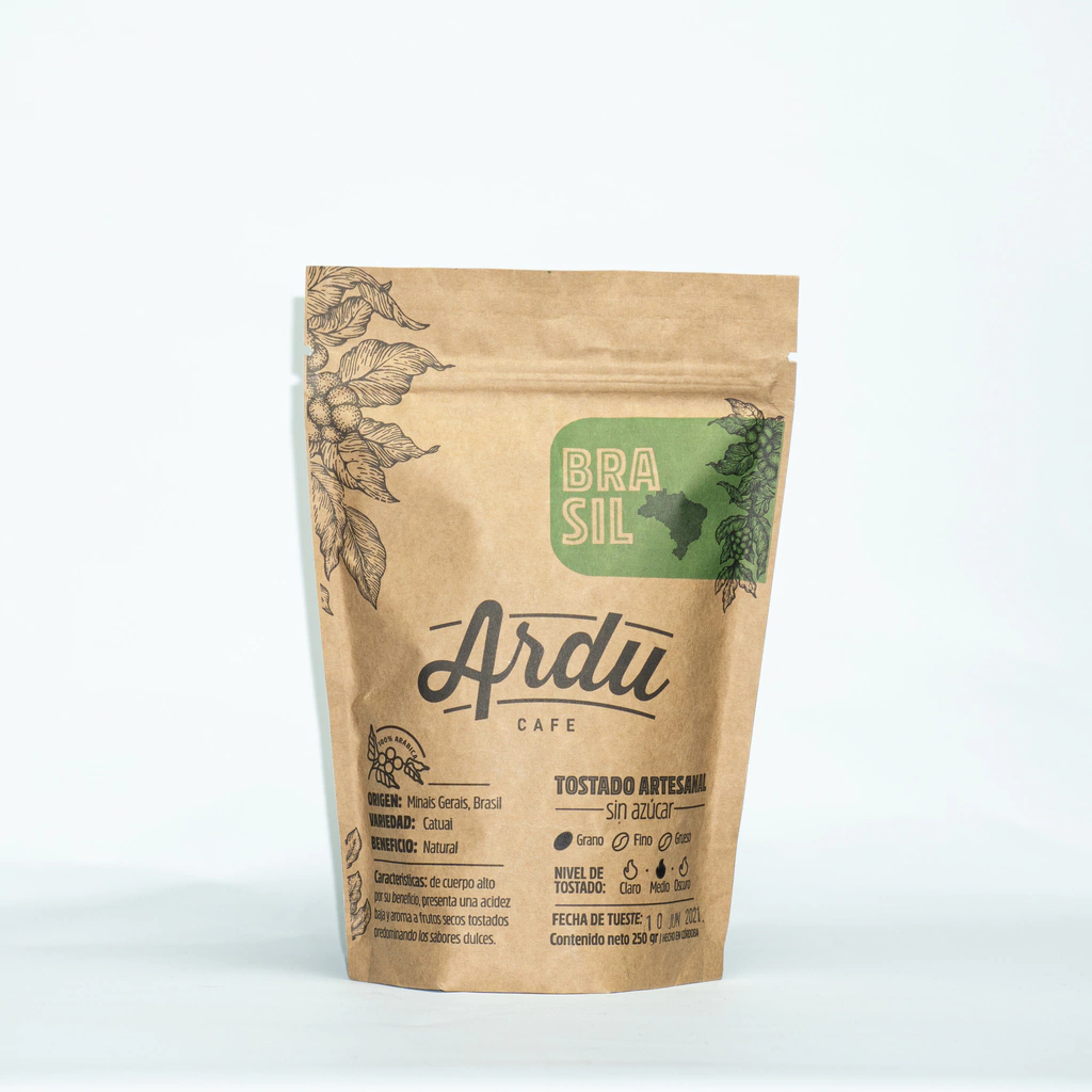 El origen del grano es cultivado en la región de Minas Gerais, Brasil. La variedad de la planta de café se llama “CATUAI” y el beneficio del proceso es Natural. Presenta como características en su sabor una acidez baja y aromas a frutos secos tostados predominando los sabores dulces. De un cuerpo alto por su beneficio.