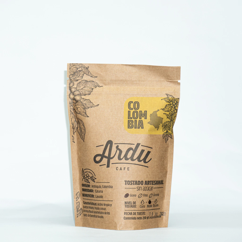 El origen del grano es cultivado en la región de Antioquia, Colombia. La variedad de la planta de café se llama “CATURRA” y el beneficio del proceso es Lavado. Presenta como características en su sabor una acidez limpia, frutal y vivaz. Con aroma floral y de cuerpo liviano, característico de los café de beneficio lavado.
